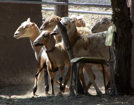 My sheep have a reputation for being easy to set and exhaust from the arena making the life of the stock handlers easier. They set easily on hay and do not stick to it so that the dogs can make their lifts. They are accustomed to being worked by many different herding breeds and are known for not being sticky or flighty. They do what you and your dog tell them, so be careful that you position your dog correctly. Twenty to forty are usually available to rent for herding trials or TV programs. They have participated in the making of a few reality television programs, Amazing Race,Big Brother and Tough As Nails. I try not to sell any of my sheep, but circumstances have a way of bringing home the reality: that I will not inbreed, and the greater the population the more prone to distress they are. So, I at times have to sell some to keep the size of the flock down. Preference is given to working homes. My sheep are organic. I amuse myself with this term meaning, as the vet says, I am very conservative in my use of drugs on the sheep. They do not get drugs unless they need it which, up to now, they have not except for an occasional injury. This means no wormers, no hormones, no vaccines! |