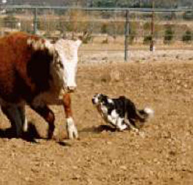 Tess gathering a cow. |